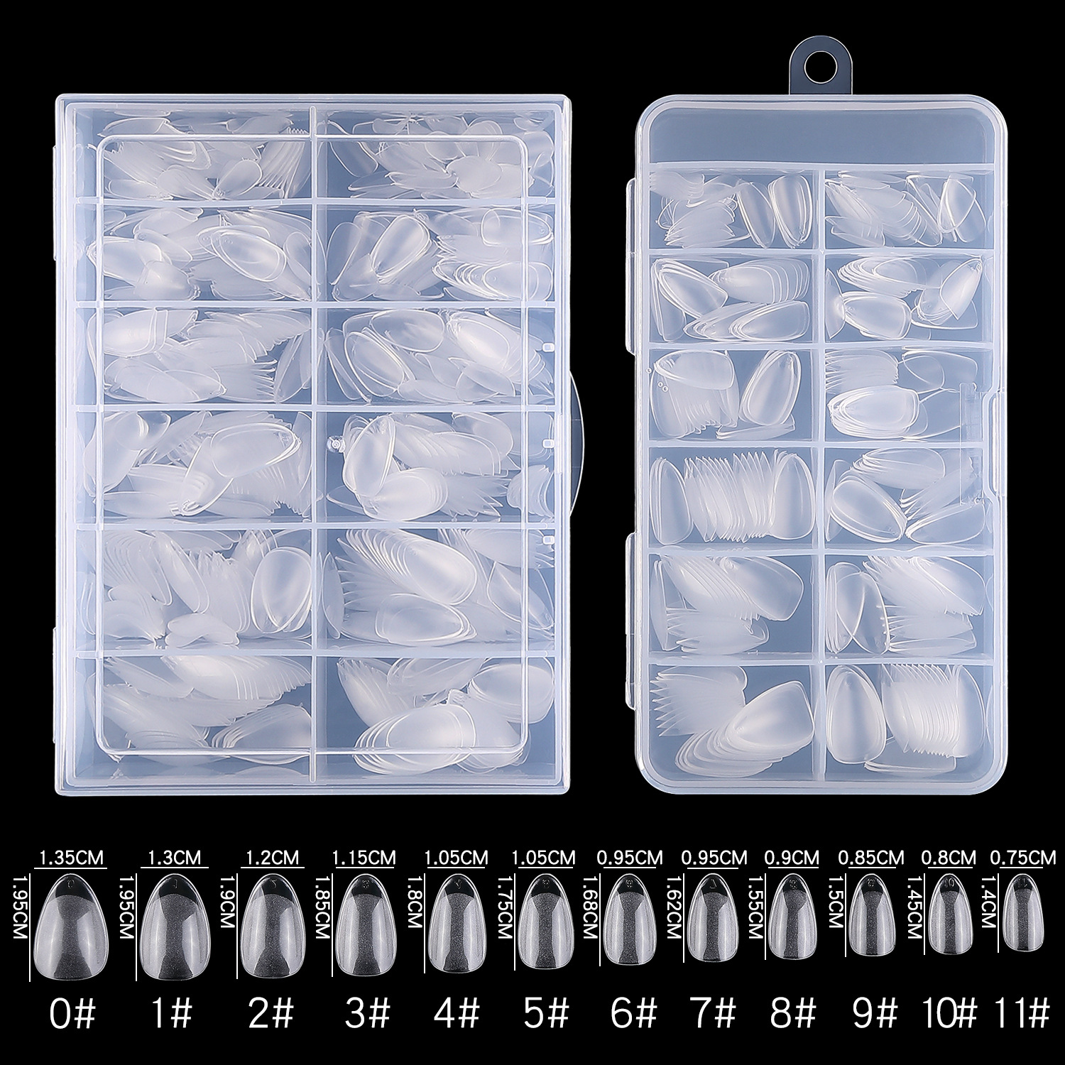 Chiodi per unghie in plastica trasparente vuota,
