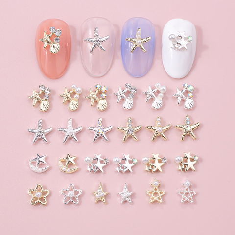 ニュービー卸売スターネイルチャームアクセサリーDIY中空3Dネイルデコレーションメタルシェルスターダイヤモンドパールアートチャーム