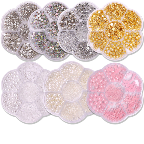 Or Argent Blanc Rose Beige Demi-Ronde Perle Dos Plat Strass Accessoires Perle Nail Art Décoration