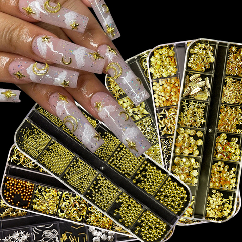 12 Grilles En Gros Noeud Papillon Longue Boîte Or Argent Nail Rivet Demi-Ronde Perle Papillon Métal Nail Décoration Nail Art Charmes