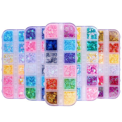 Offre Spéciale 12-Box Nail Art Paillettes Poudre En Gros DIY Bijoux Nail Charms avec Étoiles et Amour Flash Principal Fluorescent