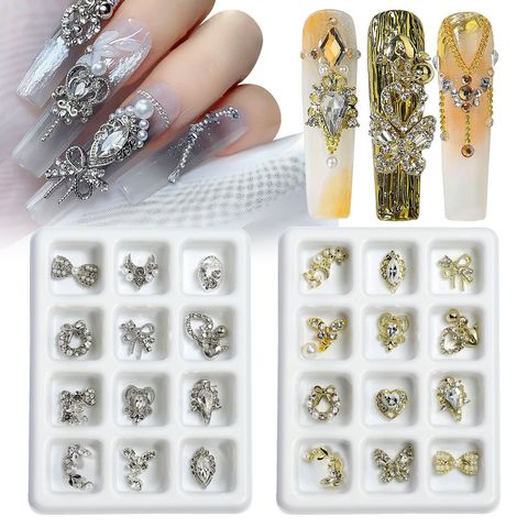 12 grilles mélangées 3D couleur résine arc perle coeur dos plat diamant Nail Art décoration ongles breloques