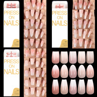 Unghie Finte Quadrate a Forma di Mandorla 3 in 1 Pre-Design, Unghie Finte a Copertura Totale in Gel Morbido Color Nude, Unghie Francesi